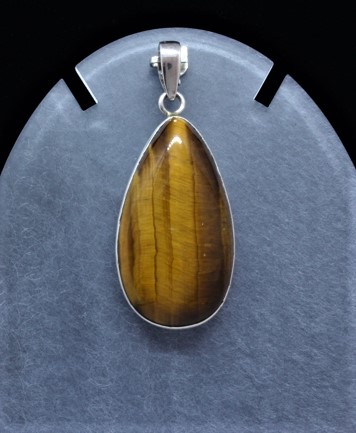 Sterling silver pendant of Tigers Eye in a large teardrop 2.1 cm wide and 4 cm tall