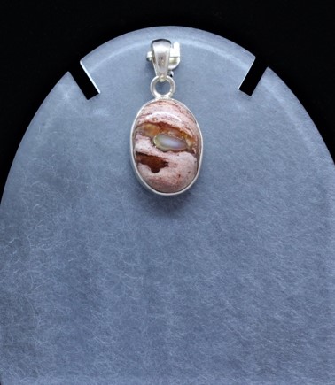 Sterling silver pendant of Fire Opal in a lighter surrounding stone, oval shape 1.4 cm wide and 2.1 cm tall