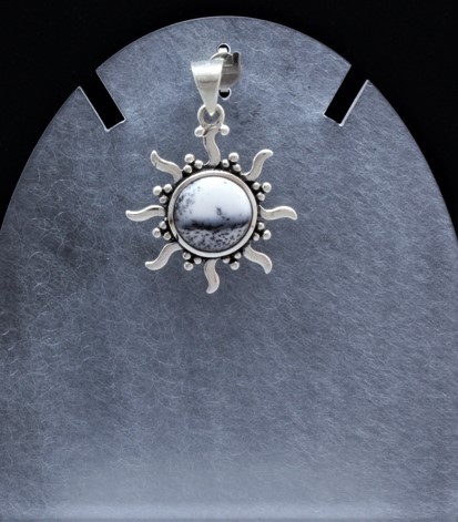 Sterling silver pendant Dendritic Opal circle in a silver sun SS-GP-100-055