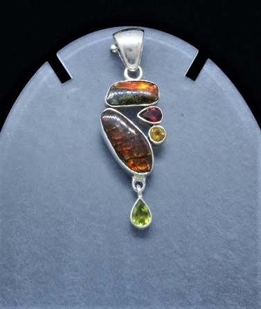 Sterling silver pendant 2 Ammolite with Garnet, Citrine, Peridot SS-GP-100-103