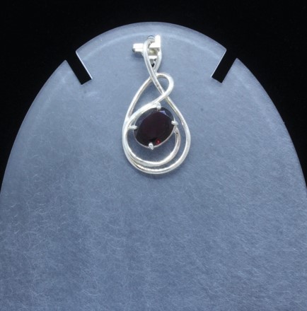 Sterling silver pendant with an oval Garnet 1.1 cm wide and 0.9 cm tall with looping silver border