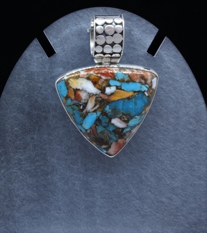 Sterling silver pendant Oyster Shell Opal Turquoise medium triangle decorative bail SS-GP-100-135