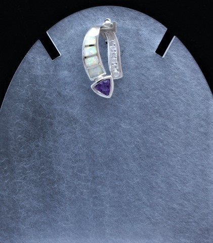 Sterling silver pendant white Opal rectangles and Amethyst triangle Cubic Zirconia side SS-GP-100-146