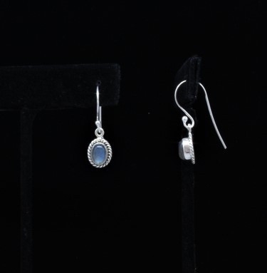 Sterling silver french hook earrings with Labradorite small ovals 0.5 cm wide and 0.7 cm tall with an oxidized rope border