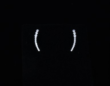 Sterling silver climber earrings with 11 round cubic zirconias small to tiny in a curved line 2.3 cm long.   In second picture:  You can wear them down or put in opposite ear to have them climb up your ear!