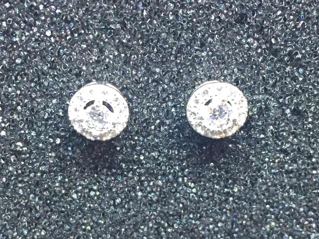 Sterling silver stud post back earrings cubic zirconia with small cubic zirconia surrounding 0.6 cm diameter