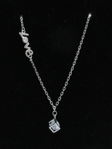 Sterling silver necklace cubic zirconia in cube and "love" on chain SS-NL-200-011