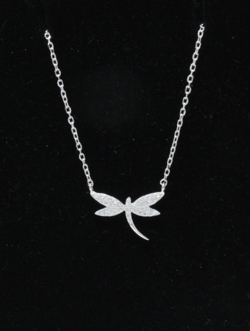 Sterling silver necklace cubic zirconia pave dragonfly 1.7 cm SS-NL-200-015