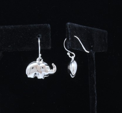 Sterling silver earrings with french hooks 2.3 cm long from top of hook, puffed elephant 1.8 cm wide.  Elephant trunk is up for good luck!