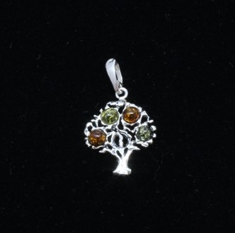 Sterling silver pendant with multi-colored amber on a small tree of life 1.5 cm wide and 2 cm tall