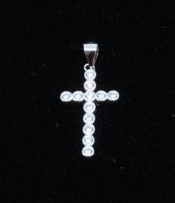 Sterling silver pendant cross made with a line of round solitaire cubic zirconia 1.5 cm wide and 2.2 cm tall