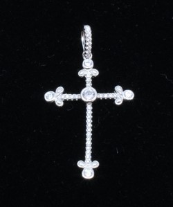 Sterling silver pendant cubic zirconia cross and bail solitaire ends/center SS-PT-200-011