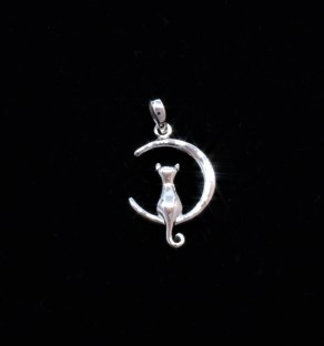 Sterling silver pendant cat in a crescent moon, 1.5 cm wide and 2 cm tall