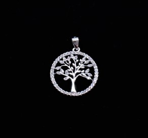 Sterling silver pendant pave cubic zirconia tree of life in pave circle SS-PT-200-024