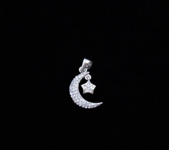 Sterling silver pendant with a cubic zirconia pave crescent moon and dangling star, 1.1 cm wide and 1.5 cm tall