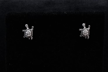 Sterling silver stud earrings 3-D turtle oxidized detail SS-ST-100-013