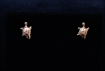 Rose gold plated sterling silver stud earrings 3-D turtle SS-ST-400-005