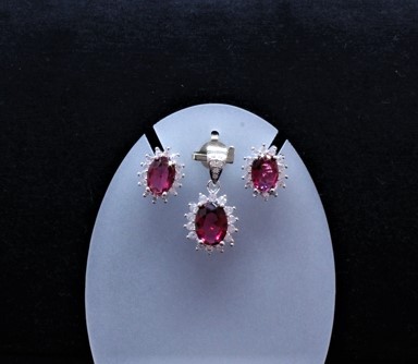 Sterling silver pendant/stud set dark pink oval cubic zirconia border SS-SE-500-004