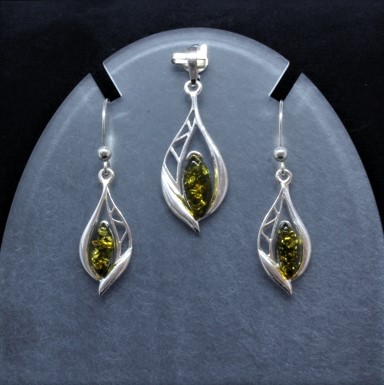 Sterling silver pendant/earring set green Amber teardrop SS-SE-800-001