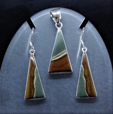 Sterling silver pendant/earring set Polychrome Jasper triangle SS-SE-800-005