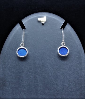 Real butterfly wing french hook earrings in sterling silver which are two sided (see pictures). Dark blue in front and are small circles of 1 cm diameter. Wings are collected from deceased butterflies on rainforest floor then preserved and sold to fund protection of the rainforest.
