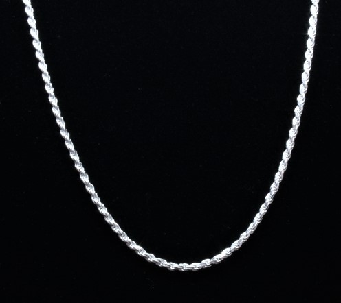 Sterling silver chain, rope style, medium thickness, 24 inches long with a lobster claw clasp