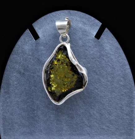 Sterling silver pendant amber green/black unique shape SS-AP-100-022