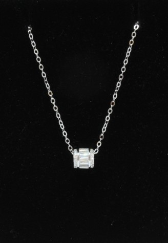 Sterling silver necklace cubic zirconia baguettes on bead 0.6 cm SS-NL-200-010
