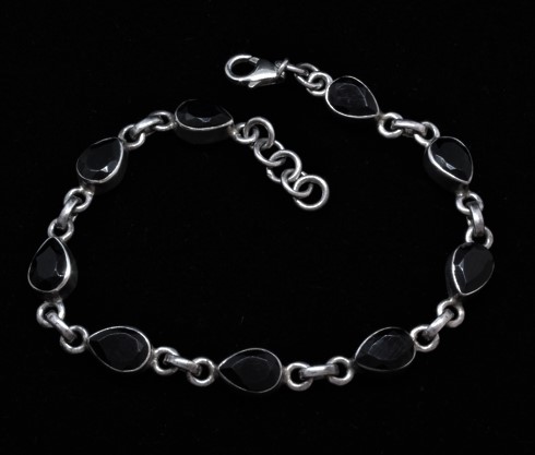 Sterling silver bracelet Black Onyx 9 pc faceted teardrops SS-BR-800-052